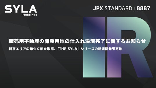 株式会社シーラホールディングス(本社:東京都渋谷区、代表取締役会長CEO:杉本 宏之、証券コード:8887、以下「当社」)のグループ会社である、株式会社シーラ(本社:東京都渋谷区、代表取締役:湯藤善行、以下「シーラ」)は、本日、下記のとおり販売用不動産の開発用地の仕入れ決済を完了しましたので、お知らせいたします。