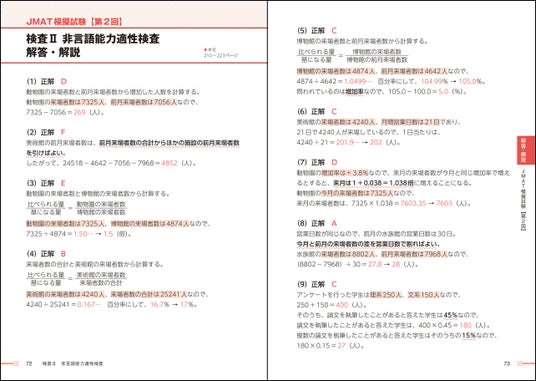 NMAT、JMAT、それぞれ2回分の模擬試験を収録しています。自分の実力がどの程度かが判断できます。また、実際の検査直前の腕試しにも最適です。ここで、いい点を獲得できれば、本番の検査にも自信を持って臨めるはずです。