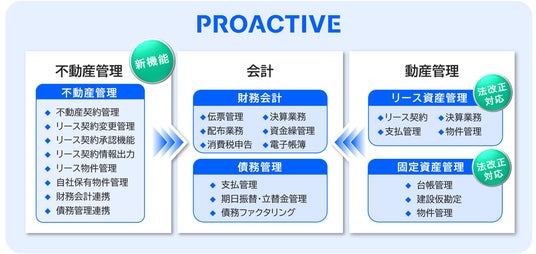 SCSK株式会社(本社:東京都江東区、代表取締役 執行役員 社長:當麻 隆昭、以下 SCSK)が提供する、AIネイティブな次世代 ERP「PROACTIVE(プロアクティブ)」は、2027年4月以降の事業年度より適用されるリースに関する会計基準(以下 新リース会計基準)に向けて、不動産賃貸借に特化した「不動産管理システム」をリリースしました。これに加え、「リース資産管理」機能を法改正に対応させることで、不動産賃貸借契約および動産リース契約の管理から会計処理までを「PROACTIVE」上でシームレスにつなぎ、新リース会計基準への対応を迅速かつ効率的に行います。