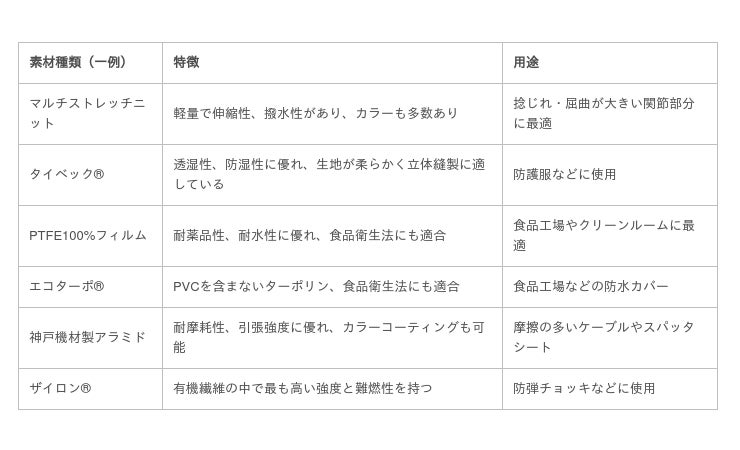 ・防護服として幅広く使用され、透湿性、防水性があります。