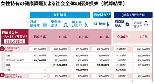 睡眠課題に加え、更年期に感じる不定愁訴により日常生活に支障が出ている割合は実は2人に1人とも言われています。また社会ではDE&Iの考え方の広まりや労働人口減少対策として、企業での「健康経営」こそが多様な人材が心身ともに健康に働け、活躍できるという考え方が広まってきています。特に女性特有の健康課題 は、業務効率や就業継続にも大きな影響を与えており、経営者が十分に理解し、職場環境などを適切に整備することでの改善が期待されています。なお更年期時期の不調で離職してしまうなどの「更年期ロス」などによる経済損失は1.9兆円という試算が出ており、女性自身の不調や不安の解消を通じて、社会が抱える課題解決に繋げていきたいと考えています。