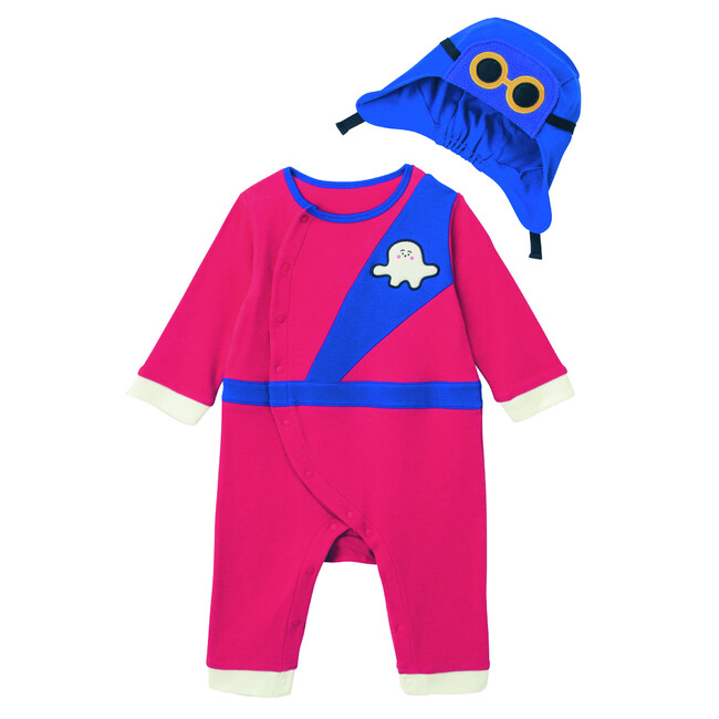 ●ママからの要望も多いお名前タグ付きロンパースタイプは、本物の衣装に近づけるため、上下分かれて見えるようなデザインに