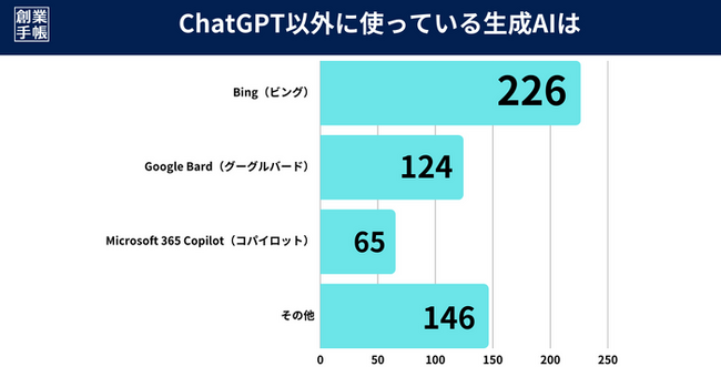 起業家・経営者を支援する創業手帳では、ChatGPT以外の生成AI利用について、独自アンケートを実施しました。