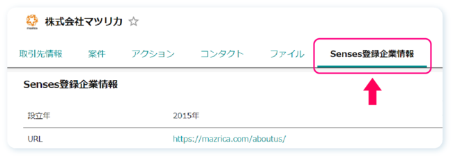 取引先のURLに入力した値をキーにSenses登録企業と照合し、マッチする場合には自動でSenses登録企業が紐づくようになりました。