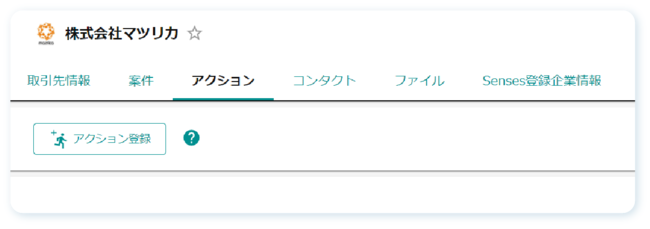 Sensesでは、電話やメールをはじめとする日々の営業活動を「アクション」として管理します。いつ、誰が、なにを行ったのかという情報がアクションに蓄積されていきます。