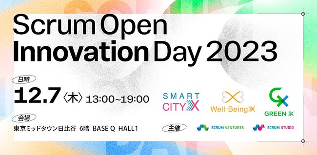スクラムスタジオ株式会社(本社:東京都港区、代表取締役社長:高橋正巳、以下スクラムスタジオ)は、スマートシティをテーマに日本の大企業と世界中のスタートアップと事業共創を目指すグローバル事業共創プログラム『SmartCityX』並びに『Well-BeingX』の2023年度の取り組みの締めくくりとして、12月7日木曜日に東京ミッドタウン日比谷 BASE Q ホールにて「Scrum Open Innovation Day 2023」を開催しました。
