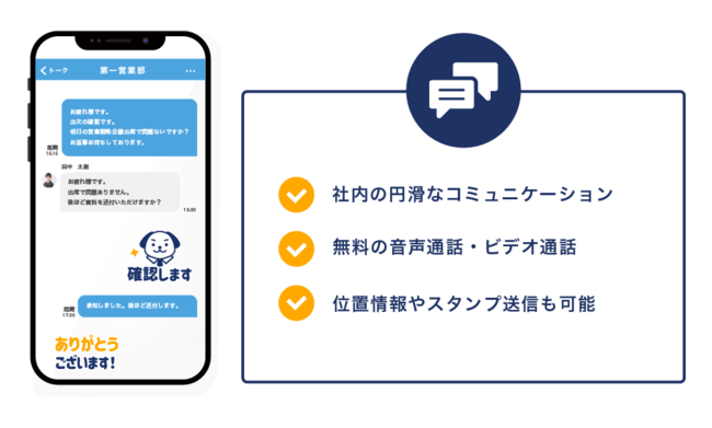社内のOneder Talkユーザー同士なら、ビジネスチャットで無料通話ができるため、内線電話が必要ありません。音声通話とビデオ通話で、円滑なコミュニケーションを実現します。