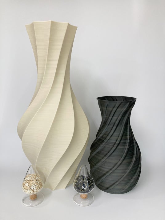 JIZAIcleで改質した材料で3Dプリントしたモデル (左) 社内で発生した端材を使用 (右)再生PPを使用