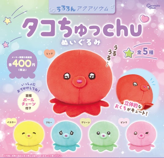 株式会社ピーナッツ・クラブ(本社・大阪府東大阪市、代表取締役社長・前田泰裕)は、カプセルトイの新製品『うるるんアクアリウム タコちゅっchuぬいぐるみ』を2024年11月8日(金)より順次、全国のカプセルトイ売場で発売します。