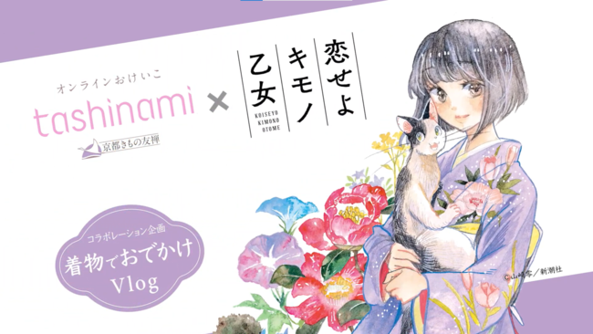 京都きもの友禅株式会社(本社:東京都中央区、代表取締役社長: 橋本和之、以下京都きもの友禅)が運営するオンラインおけいこ「tashinami」(タシナミ)は、株式会社新潮社が運営する WEB マンガサイト「くらげバンチ」で連載中の漫画『恋せよキモノ乙女』とのオリジナルコラボ浴衣製作に続く第2弾の特別コラボレーション企画として、作品のゆかりの地を着物で巡るスペシャルムービー「着物でおでかけVlog」を、2023年1月6日(金)より京都きもの友禅公式YouTubeチャンネルにて公開いたします。