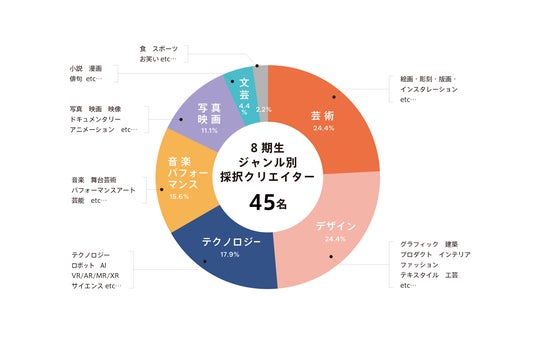 年間120万円の奨学金給付を行う「クリエイター奨学金」。この度、エントリー数1,486名から選ばれた8期生45名の採択が決定。1年間の奨学金給付と合宿や展覧会などの年間カリキュラムで創作活動を支援。