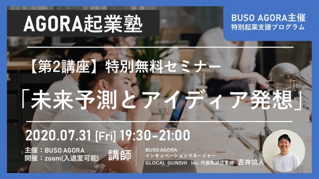 *7月31日(金)19:30~開催する【第2講座】「未来予測とアイディア発想」をオンラインで公開します。