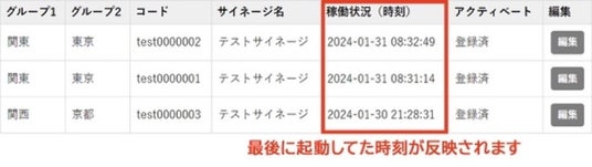 STBがインターネットに接続されているかをアプリケーションが1分ごとに確認し、管理画面に表示します。STBが通電していない場合やインターネットに接続されていない場合は最後にアプリケーションが確認した時刻が表示されます。