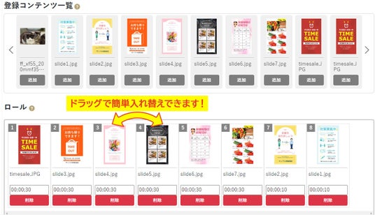 複数のサイネージも個別管理できるので、これまでUSBメモリなどの外部記録メディアをご利用されていた方にとっては、いちいちコンテンツの切り替え作業を行う必要がなくなります!