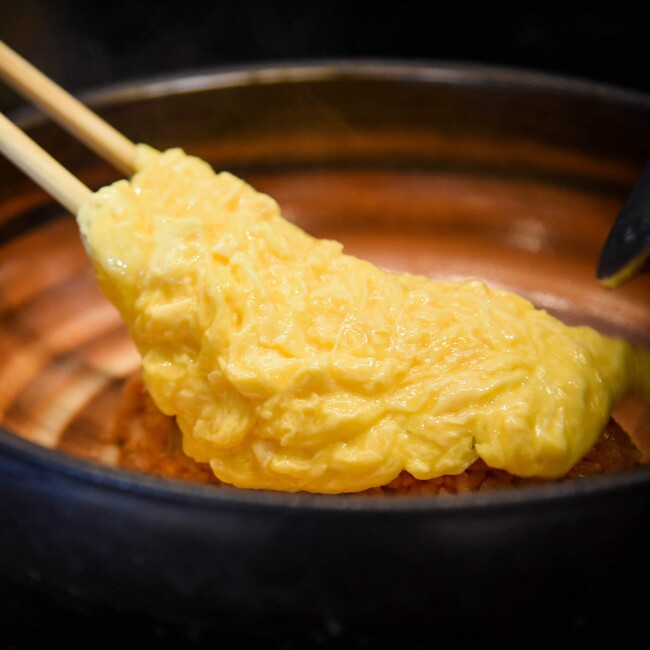 引き立ています。卵を切るようにし、空気を入れるようにかき混ぜることでふんわりとした卵に仕上がります。単純な工程のように見えますが、ここにも職人技が光っています。