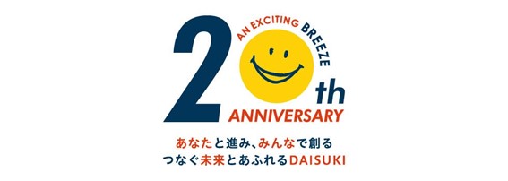 節目である20年目は、BREEZEをご愛顧いただいているお客さまや、共に歩んでくださる皆さまと創っていければと考えております。その想いを込めて「あなたと進み、みんなで創る つなぐ未来とあふれるDAISUKI」をテーマとして、ワクワクをお届けします。このロゴは、BREEZEのブランドロゴカラーであるネイビーをベースとして、「0」の数字をFOスマイルで表現し、ワクワクをお届けすることで笑顔になって頂きたいという想いをこめております。