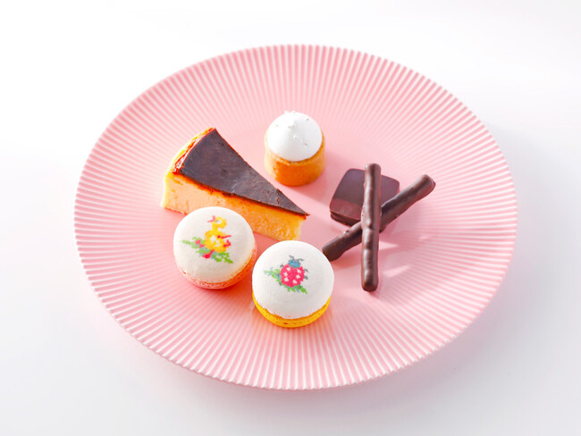 コラボレーションアフタヌーンティーでは、『ハイジロイヤルグリーン』のモチーフ『HEIDI(ハイジ)』で人気の「アヒル」と「てんとう虫」をマカロンにプリント。ピンク色の有田焼のお皿に盛りつけて、『HEIDI(ハイジ)』の世界観を再現しました。