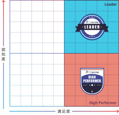 「認知度」と「顧客満足度」の双方で優れている製品には「Leader」の称号が贈られ、バッジが発行されています。ITreviewの「Leader」は、多くの利用者から支持を得ている証であり、名誉ある称号とされております。