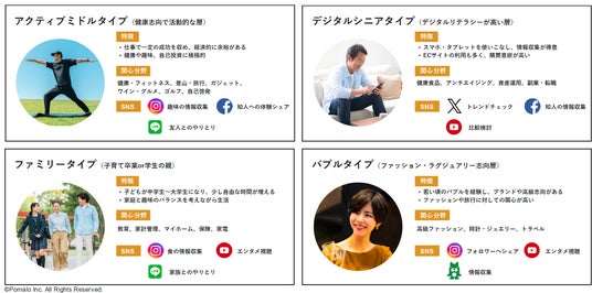 現在のライフスタイルや趣味嗜好に加え、過去に経験してきたトレンドを振り返り、X世代のタイプを分類し細かくペルソナを設計します。