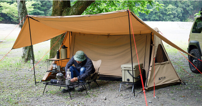 ~焚き火を楽しむために、アウターテントだけでなく、インナーテント(フロンドドア部)にもTC(ポリエステル・コットン)混紡素材を使用~
