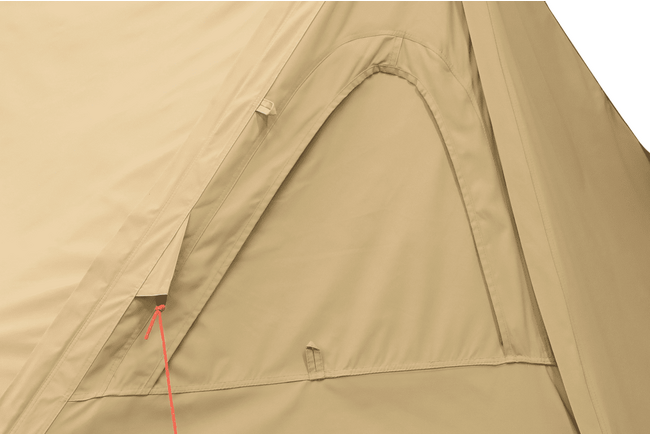 支柱ポール先端をテント外側に貫通させ固定する形状ではなく、支柱ポール差込口がアウターテント内側に内蔵されているため、支柱ポール先端からの水の侵入を大幅に軽減します。