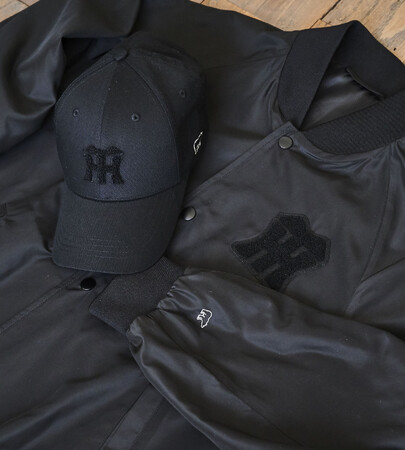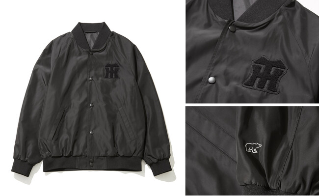 野球観戦するスタジアムだけでなく、街中でも着ていただけるよう、オールブラックでまとめたモード感溢れる仕上がりに。