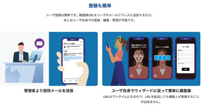 カメラとの連携だけでなく、専用のQRコードを読み取ることでスマホでも顔認証を起動可能。導入ハードルを極限まで下げた顔認証入退室システム