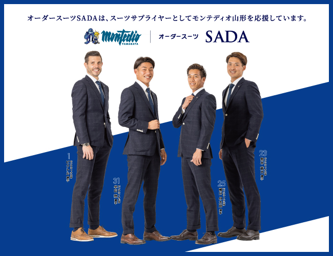 工場直販オーダースーツ店舗数日本一の株式会社オーダースーツSADA(本社:東京都千代田区 代表取締役社長:佐田展隆)は、「モンテディオ山形」のオフィシャルスーツサプライヤーとして、取り組み10周年を記念したキャンペーンを、仙台エリアの店舗にて、2021年8月16日(月)~8月31日(火)まで開催いたします。