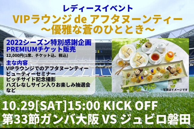 10/29(土) 明治安田生命J1リーグ第33節ジュビロ磐田戦にて、レディースイベント『VIPラウンジ de アフタヌーンティー 』~優雅な蒼のひととき~のチケット発売が決定いたしました!