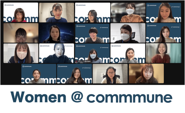 WOMEN@commmuneは、コミューンで働く女性社員で構成される、女性社員のためのコミュニティです。定期的なネットワーキングを通して、男性多数で構成されるスタートアップだからこその課題を抽出し、女性社員が様々なライフイベントを経てもこれまで通り活躍し、生き生きと働きつづけられる組織づくりを目指します。今後は月に一度の活動を継続していくとともに、弊社のみの活動に留めず同様の課題を抱える他社と協力することで、SaaS業界・スタートアップ業界全体で女性をエンパワーメントし、一人一人が生き生きと働き続けることができる社会を目指します。