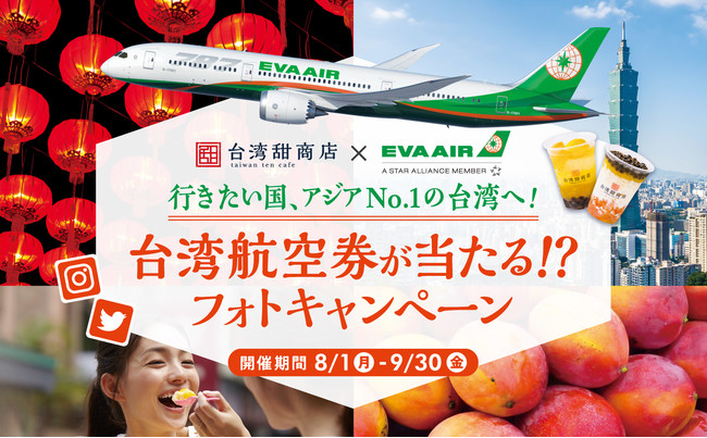 概要:期間中、台湾甜商店公式TwitterもしくはInstagramをフォローの上、「#台湾甜商店」「#エバー航空で台湾へ」のハッシュタグをつけて対象ドリンクの画像を投稿してくれた方の中から、抽選で景品を贈呈。