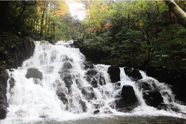 古くから信仰の場として崇められてきた、美しい大小7つの滝からなる七ツ滝。上流に6つの滝があり、何万年も前からの地殻変動によってできた岩の上を、次々と流れ落ちる水が印象的です。上流にある6つの滝は遊歩道が整備されているので、安心して歩いて見ることができます。