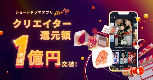従量課金型ショートドラマアプリ「BUMP」(開発・提供:emole株式会社、本社:東京都目黒区、代表取締役:澤村直道)は、2022年12月末のサービス開始から約2年間(~2024年12月末)で、ショートドラマ作品のコンテンツプロバイダー・クリエイターへの還元金額が、累計1億円を突破したことをお知らせいたします。