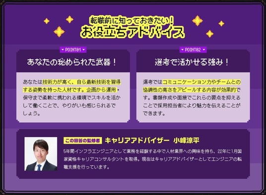 「あなたの秘められた武器」や「選考で活かせる強み」といった転職お役立ちアドバイスも紹介します。