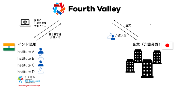 このような背景から、NSDCIはインドでの人材獲得、フォースバレーは日本企業への就職支援を担う協力体制を敷くため、今回の業務提携契約を締結する事となりました。候補者は日本企業から内々定を得て現地で日本語教育研修に参加、研修終了後、来日して日本で働く事となります。企業の人材受け入れに非常に重要となる日本語の習得についても、パートナー企業の協力を得て独自の日本語教育プログラムを現地で提供し、スムーズな就労に繋げます。