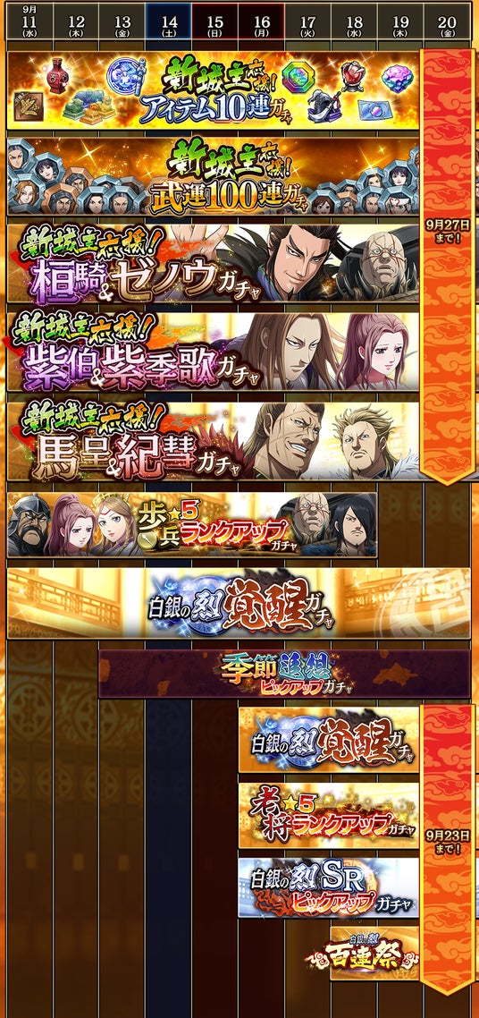 白銀の烈版は武将排出確率が通常時と比べて2倍にUPします!