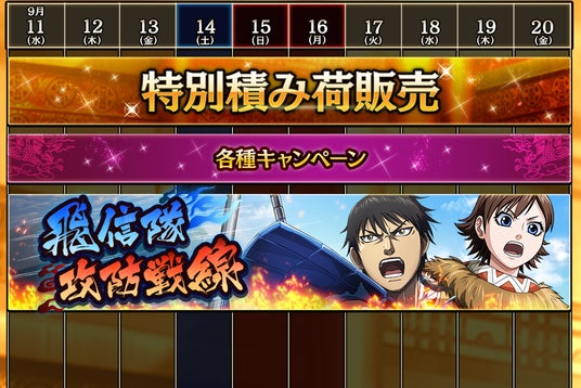 イベントクエスト『飛信貂瘣の攻防戦』『娘軍師強奪! 戦場の手土産』で交換用アイテム『王の剣』『信の鎧』を集めて、豪華報酬を獲得しよう!