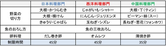 ・出場者:地区大会通過者計55人(日本料理部門21人、西洋料理部門21人、中国料理部門13人)