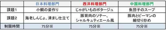 ・競技内容:応用課題の調理(部門ごとに統一課題2作品)