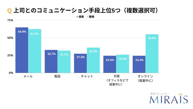・メールに次いで、就業時間中のオンラインでのミーティングが理想のコミュニケーション手段の第2位。
