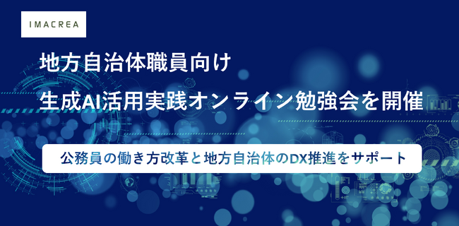 株式会社イマクリエ(本社:東京都港区、代表取締役:鈴木信吾、以下、当社)は、自治体職員による生成AIの活用を通じて公務員の働き方改革(長時間労働の軽減など)と地方自治体のDX推進を目指し、『地方自治体職員向け生成AI活用実践オンライン勉強会』を2024年2月から開催することをお知らせします。