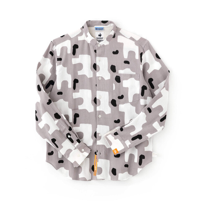 高島縮 スタンドカラーシャツ