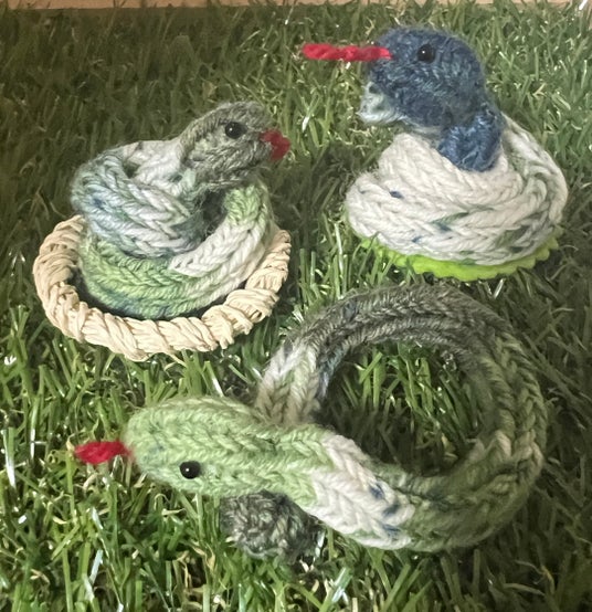 ニット小物や編みぐるみ指人形などのコラボ作家作品、オパール毛糸の編み地をモチーフにしたマスキングテープなど、編み物をしない方でも楽しめるかわいい小物を集めました。