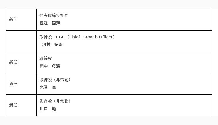 同社の完全子会社化に併せ、以下の経営体制となる予定です。