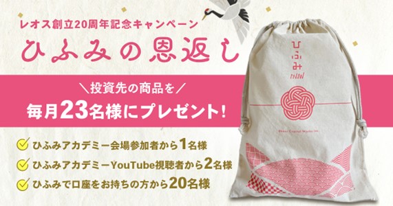 毎月開催の月次運用報告会「ひふみアカデミー」の終了後に、投資先企業の商品をご紹介し、合計で23名様にプレゼントます。詳細は、月次運用報告会にご参加ください。