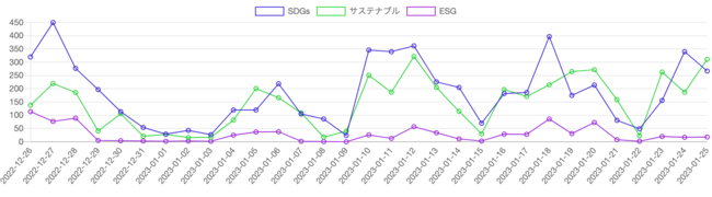 株式会社トドオナダ(代表取締役社長 松本泰行)は、2022年12月26日~2023年1月25日までのSDGs・ESG・サステナビリティに関するウェブニュースについて調査・分析いたしました。3,000以上のWEBメディアをモニタリングできるPR効果測定サービス「Qlipper」(https://qlipper.jp/)のデータに基づいた調査結果です。