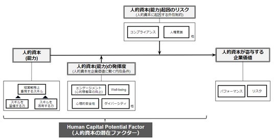 したがって、持続的な企業価値向上のためには、人的資本そのものと、人的資本の発揮度等を含めた「Human Capital Potential Factor(人的資本の潜在ファクター)」を定量化し、企業価値にどのように寄与しているのかについての投資対効果(ROI)を検証していくことが重要であると考えております。