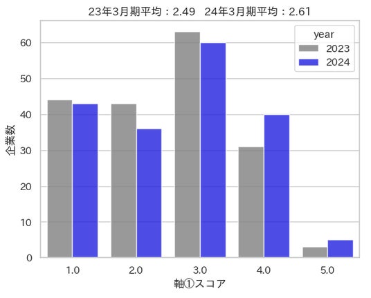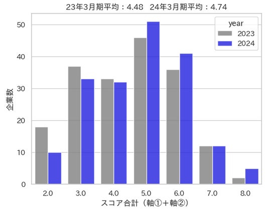 2023年3月期に比べ、対象企業全体でスコア上昇(軸2)