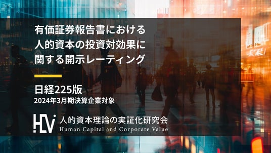 一橋大学大学院・小野浩教授と、一橋大学大学院特任教授兼Institution for a Global Society 株式会社代表取締役会長CEO・福原正大が共同座長を務める「人的資本理論の実証化研究会」(以下、「本研究会」)は、この度、日経225銘柄のうち3月期決算の企業について、2024年3月期有価証券報告書における「人的資本の投資対効果」をレーティング、また、2023年3月期分との経年変化および企業価値(株価)との連関を分析し、レポートにまとめましたので発表いたします。