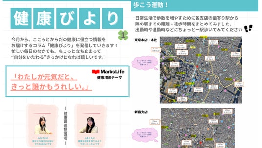 ・社内報「健康びより」を毎月配信し、健康に関する情報を発信